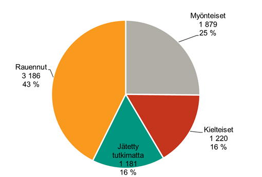 Viime ja tänä vuonna kielteisen turvapaikkapäätöksen on saanut noin 9 000 ja myönteisen noin 6 000 hakijaa. Hakemuksia on rauennut lähes 7 000, eli hakija on joko jättänyt prosessin kesken tai hänestä ei ole kuultu kahteen kuukauteen. Noin 3 000 hakemusta on jätetty tutkimatta siksi, että ne ovat kuuluneet toisen EU-valtion ratkaistavaksi.