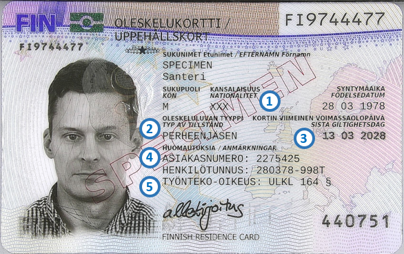 4. Finnish Immigration Service customer number and personal identity code, if you have one. The personal identity code is not an obligatory piece of information on a residence permit card.