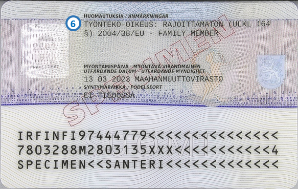 6. Any relevant information concerning the permit can be entered in this field, such as additional details on the right to work. In a residence permit for an employed person (TTOL), the details on the right to work that is included in the permit and the industries where the permit holder may work are described in this field.
