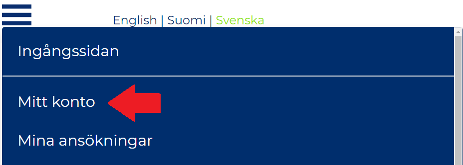Dessa uppgifter förekommer i din ansökan enligt de uppgifter som du har angett i ditt användarkonto när du skapade kontot. Om ditt namn har förändrats, ska du ändra det först på sidan ”Mitt konto” och sedan börja fylla i ansökan på nytt.