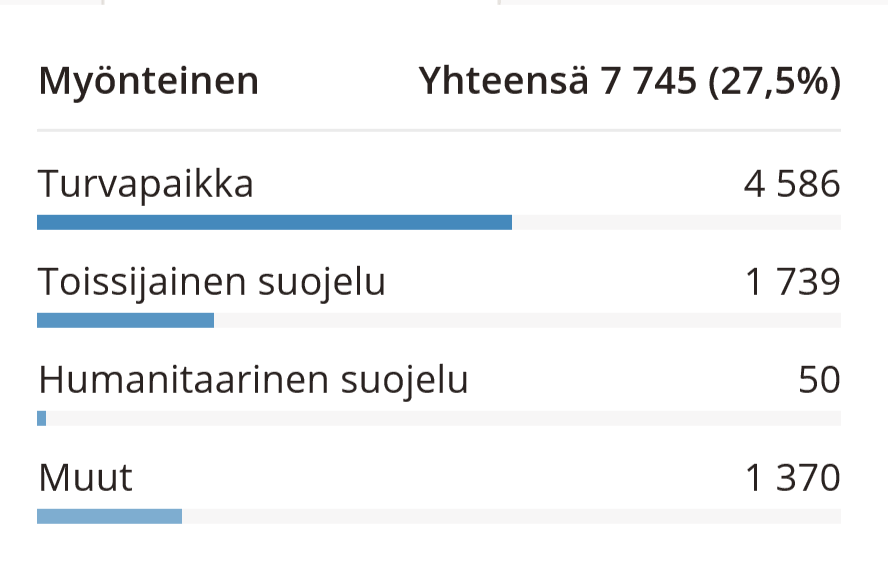 - Esimerkkikuva myönteisten päätösten jakautumisesta.